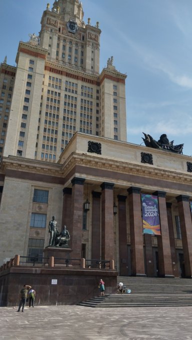 В 6 утра были у общаги и уже третьи, в 8 .30 заселились, тут же подъехала старшенькая ,в 9 мы уже ехали с последней в автобусе: я привезла харчишек и нужно было положить в холодильник. 50 мин на м19 и мы с Нагатино уже возле МГУ. Так что дочки могут без пересадок кататься друг к другу. Потом гуляли не торопясь, жарко, даже перебор+27 в тени. Потом меня посадили на Ласточку и домой! Не думала что соскучусь по прохладе. 🤣 МГУ и рядом прилегающую территорию во всю ремонтируют, но одно фото сделала с плакатом День знаний.