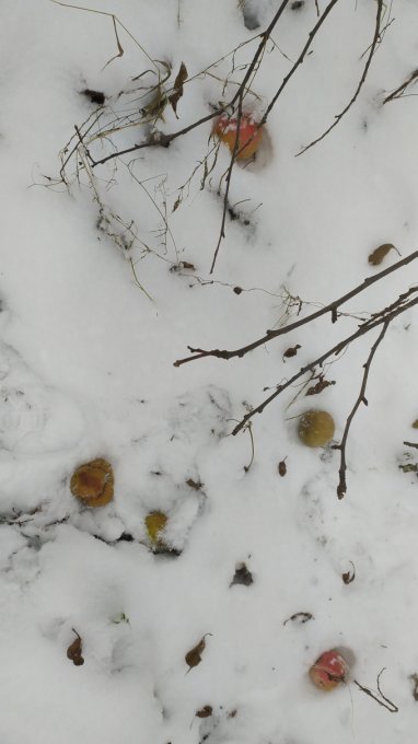 'Яблоки на снегууу... " Муж сегодня расчистил в наш огородик дорожку и я сразу побежала до яблони. Вёдра 2-3( потому что крупные) остались на дереве. Я этого не ожидала думала дерево все-таки скинет. Итог, взяла палку и почти ведро на сбивала. Сварила кисель, остальные запекла в духовке и наварила варенье с сахарозаменителем + сделала десерт