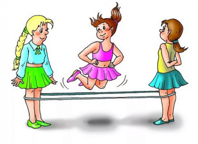 девченки пойдут в класики играть и через резинку прыгать