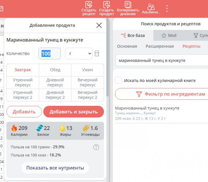 , вот прямо в дневнике в разделе рецепты нужно написать название этого рецепта. Например я увидела в рецептах Маринованный тунец в кунжуте, так и вбиваю в дневнике