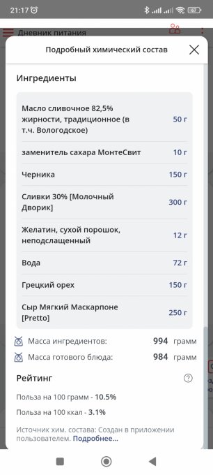 | Кол-во | Калории | Белки | Жиры | Углеводы | |