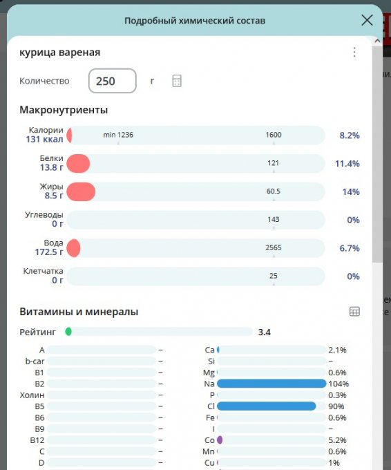 | Кол-во | Калории | Белки | Жиры | Углеводы | |