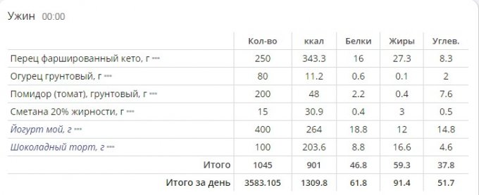 | Итого за день | 3908 | 1253 | 70 | 91 | 36 |