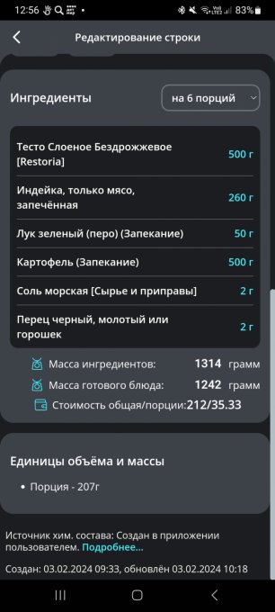 | Итого за день | 3250 | 1404 | 121 | 45 | 114 |