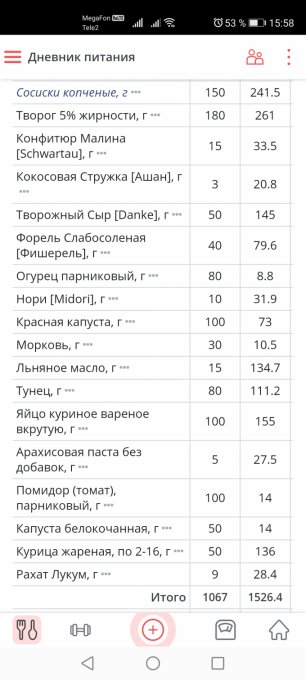 | Итого за день | 800 | 1043 | 47 | 73 | 48 |