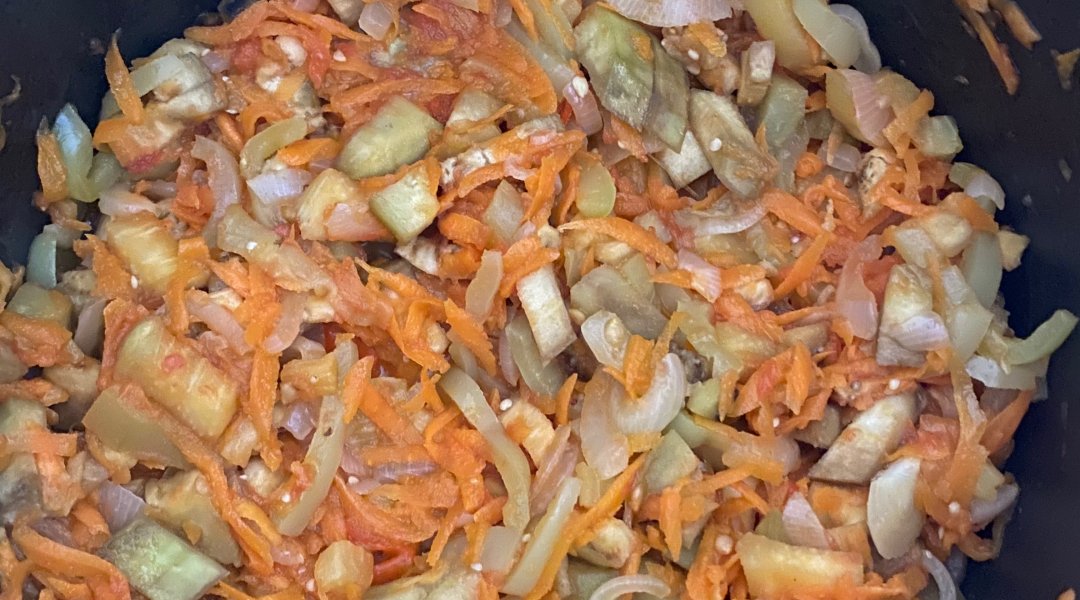 Лук Режу полукольцами, перец соломкой,морковь и помидор тру на терке ,баклажан чищу от кожуры и режу кубиками.все в мультиварку и тушу 30 мин.
