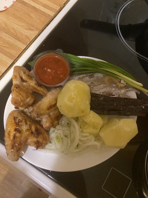 | Курица, цыплята-бройлеры, крылышки, только мясо, запечённые |