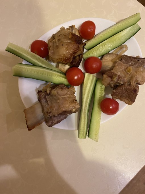 | Свинина, рёбра средней части с мясом, постное мясо, запечённые |