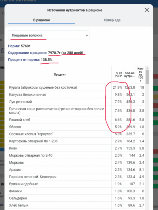 всю гущу съедать, а это бееее, поэтому показатели по клетчатке