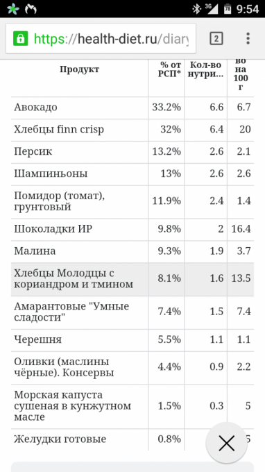 можно смело отполовинивать. В дневнике питания справа в разделе