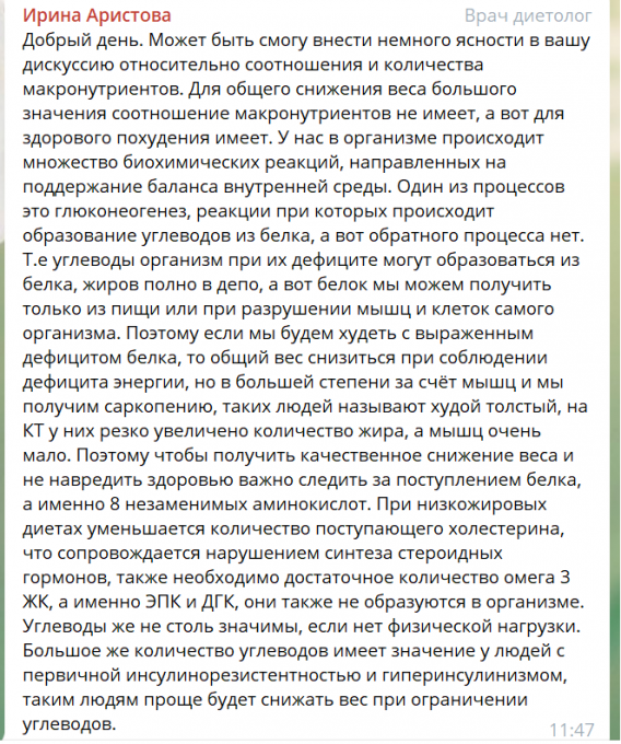 Копирую из телеграм-канала Злой Печеньки сообщение приглашённого диетолога с её разрешения: