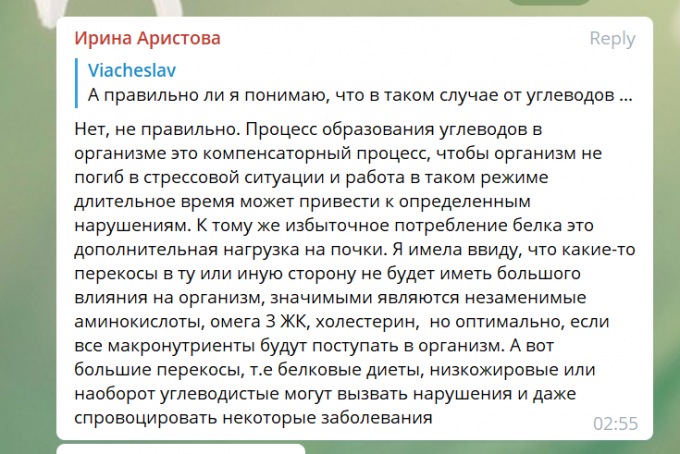 А потом кто-то её спросил, правильно ли, что можно питаться совсем без углеводов: