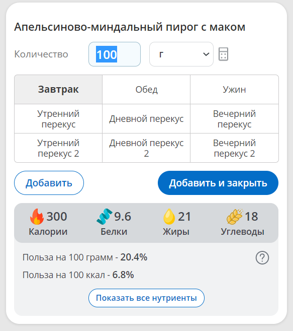 | Кол-во | Калории | Белки | Жиры | Углеводы | |