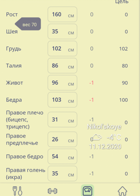 Вес отягощения |