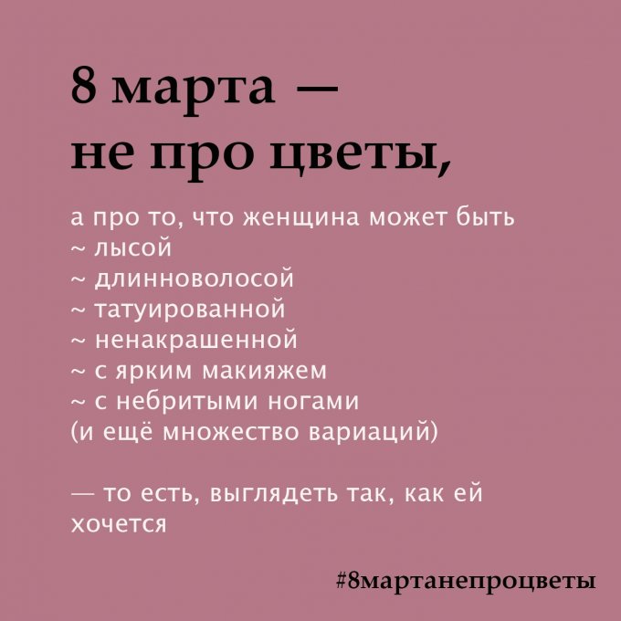 Если кто-то из женщин считает, что ей надо гонятся за современными стандартами и подвергать себя хирургическим вмешательствам ради этого - ну блин... этого из ее головы и демонстрациями не выбьешь)