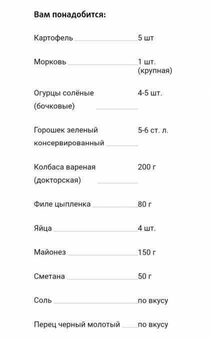 У меня Оливье - стандартный, а вот Селедка под шубой без картошки и