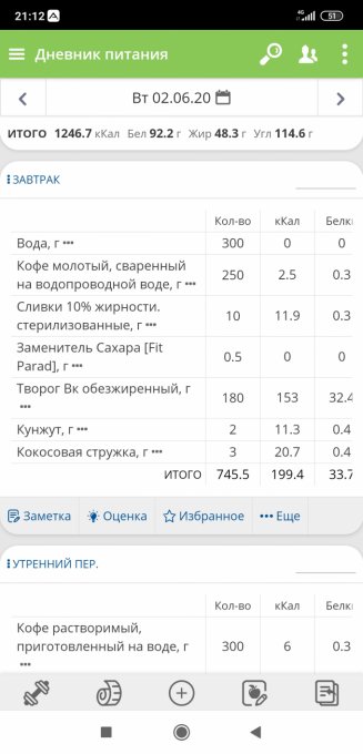 | Итого за день | 2030 | 1289 | 58 | 41 | 166 |