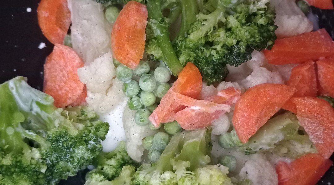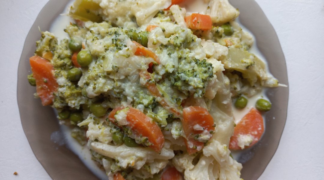 путь. Снова вкусные овощи в сливочном соусе, постная свинина,