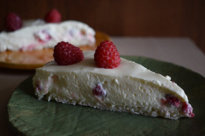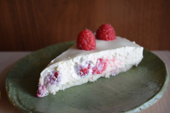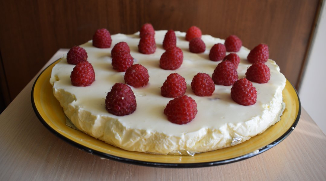 Готовый чизкейк сверху украсить 100 гр. малины.