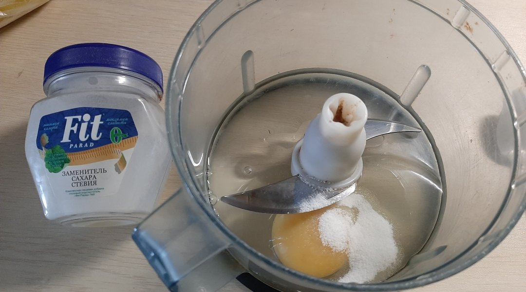1 яйцо и 1 ч.л. сахарозаменителя взбить до получения пенистой массы