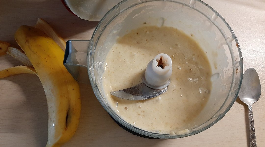 Добавить к нему банан дольками (у меня получилось 1,5 банана).