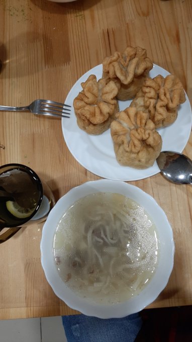 жаренные во фритюре), чебуреки, шулэн (суп с домашней лапшой,