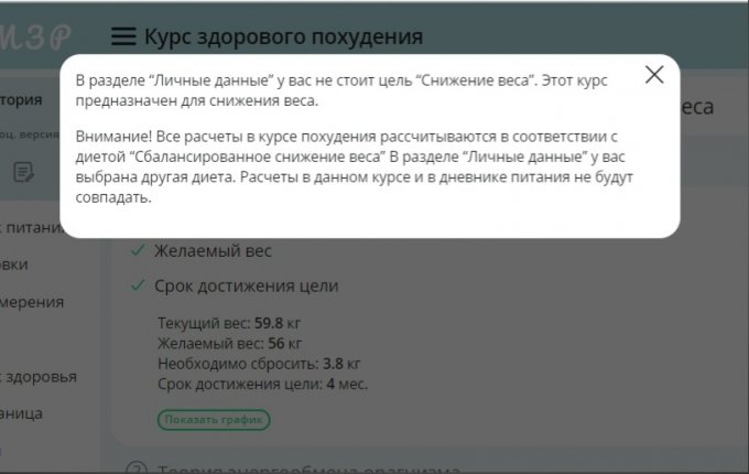 2) НО!!! Когда я захожу в "Курс похудения" , выходит такое