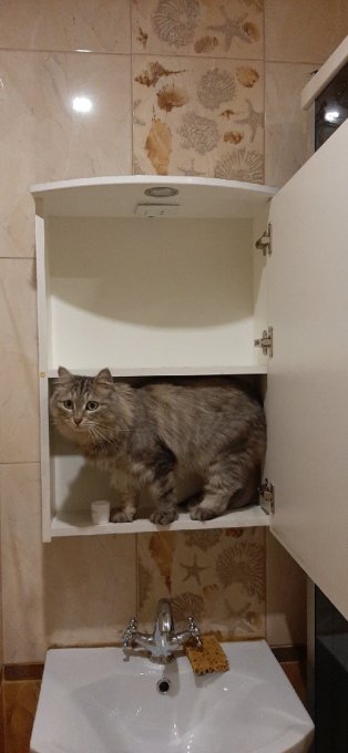 сегодня уходила к врачу, и пришли рабочие, зашкерился куда-то, они