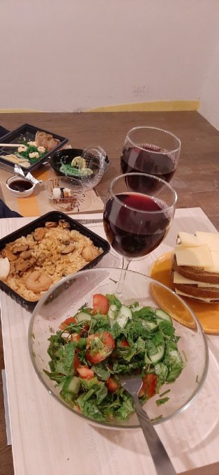 винишком и японской едой. Кот в шоке от нового места жительства.