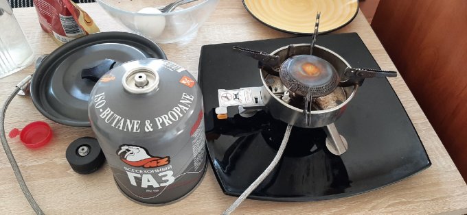 на кухне. Поэтому завтрак был по походному, на газовой горелке