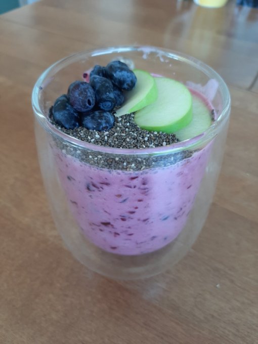 Сначала сделала с ней ПП десертик - кефир, семена чиа, отруби,