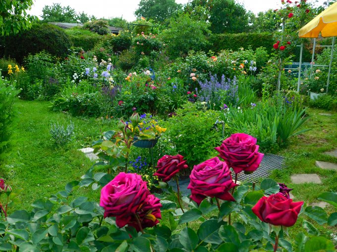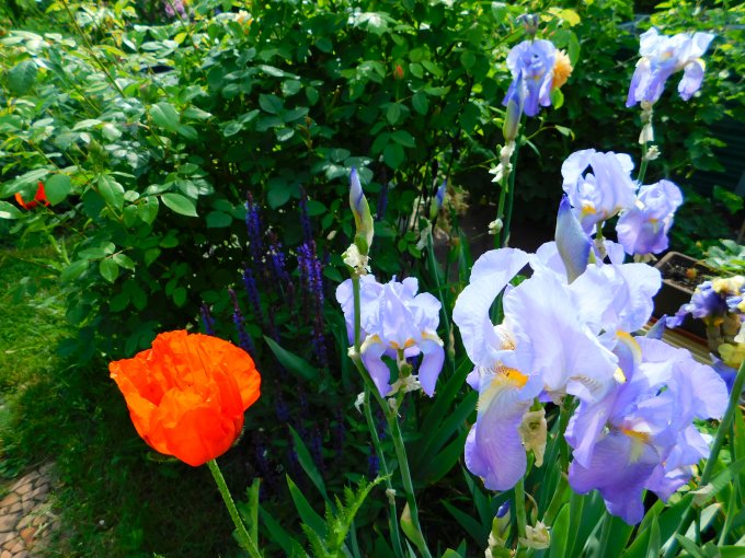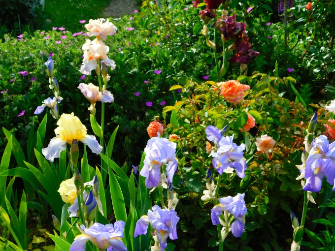 Прохладно, ветренно, вчера был град и гроза. Мои ирисы и розы,