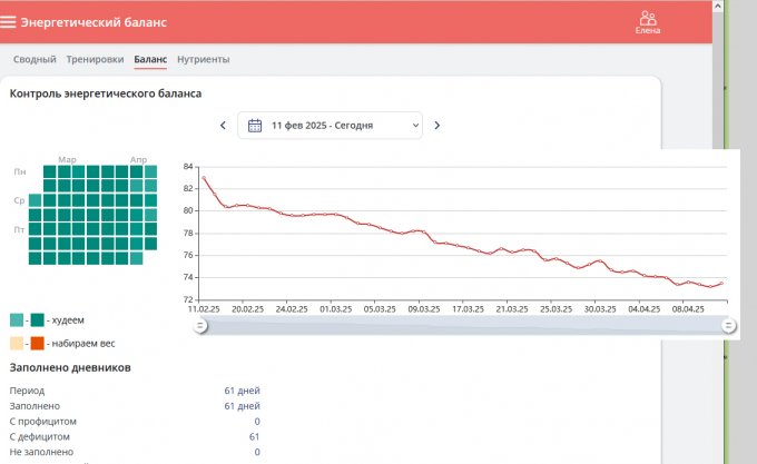 За второй месяц - минус 3,5 кг. Итого за 2 месяца минус 9,5 кг.