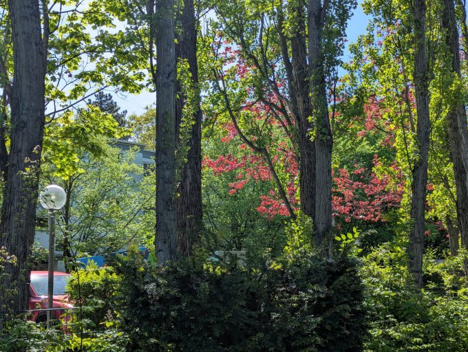 Зато весна торопится наверстать упущенное. Сейчас зелень такая свежая, сверкающая, чистая, разноцветная, еще не припыленная, красота кругом, куда ни кинешь взгляд. Сорняки, правда, прут со страшной силой, не успеваю за ними. Тюльпаны стремительно отцвели, только "зубастенькие" держатся долго. От ароматов сирени кружится голова. Незабудки кругом насеялись сами.