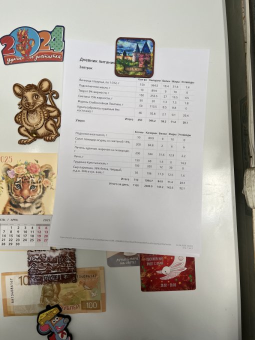 | Итого за день | 988 | 2470 | 141 | 183 | 60 |