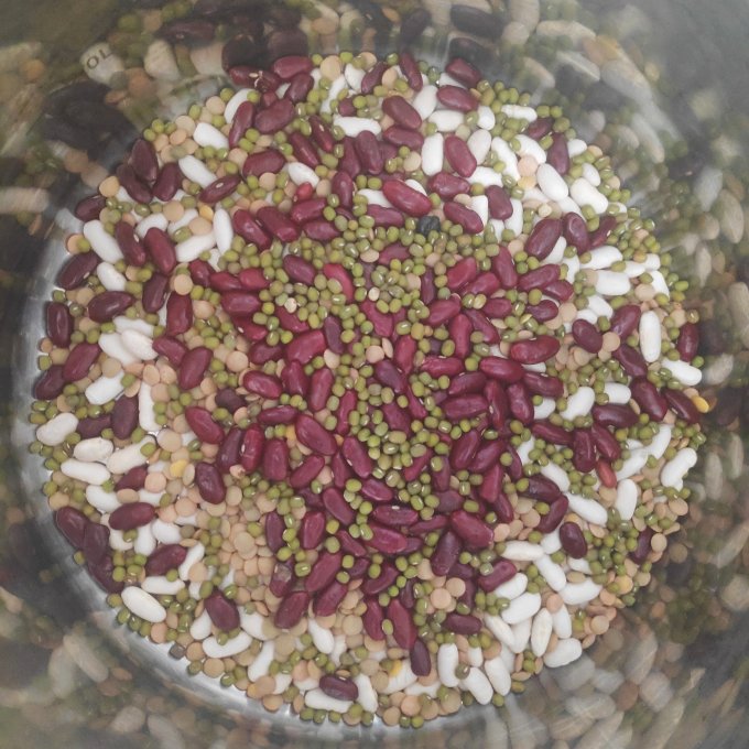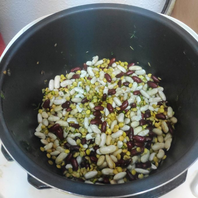 Этап первый - замачиваем основное - бобы. Я использовал фасоль белую, фасоль красную, маш и чечевицу. Кто-то использует маринованные бобы, чтобы было быстрее. Я маринованное не ем вообще. Приходится готовить  Всего бобов где-то 500г-600г.