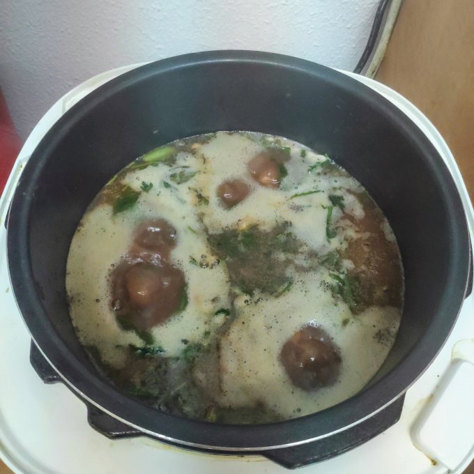 Открываем мультиварку, добавляем в сваренные бобы 2 литра воды и поджарку с зеленью. Я добавлю туда еще сумах, столовую ложку, потому что все готовлю без соли. Сумах делает вкус насыщенней. И варим с открытой крышкой где-то минут 5. Пока варится у меня 5x30 косых "шагов альпиниста" с подтяжкой до груди.
