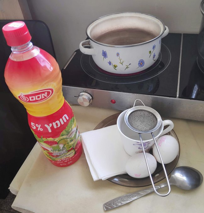 Кружку с яйцом нужно держать как можно ближе к воде.
