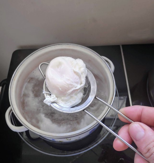 этим самым ситечком вылавливаем готовое яйцо и выкладываем на