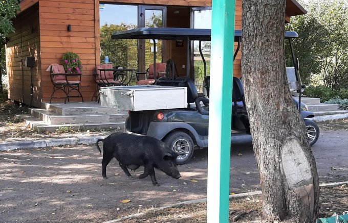 города, и услышали их хрюканье. Партнёр мне сказал "Ты только не