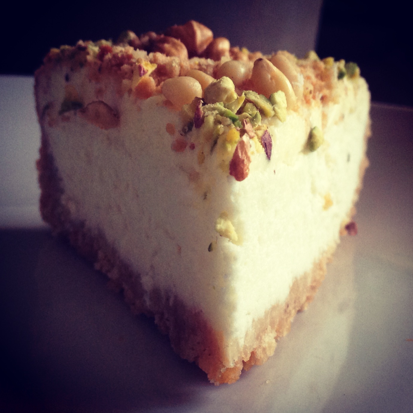 Печенье измельчить в крошку, сливочное масло растопить,смешать! этим выложить дно и борта формы! творог сметану сахар цедру крахмал все смешать, но не взбивать! вылить на основу! форму поставить в сковороду с кипятком(на на водяную баню) и всю эту конструкцию в духовку на 50 минут 160 градусов,после оставить его там еще на час не открывая духовку! после минимум на 4 часа в холодильник, украшайте чем хотите, у меня разнообразные орешки!