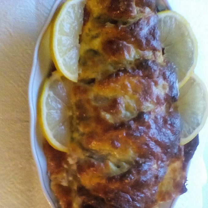 | Скумбрия запечённая с сыром и яйцом. |