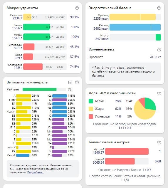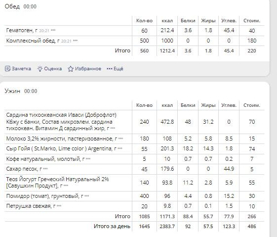 | Итого за день | 1000 | 2417 | 107 | 67 | 369 |