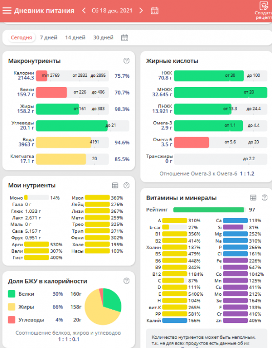 | Итого за день | 3510 | 1191 | 16 | 116 | 20 |