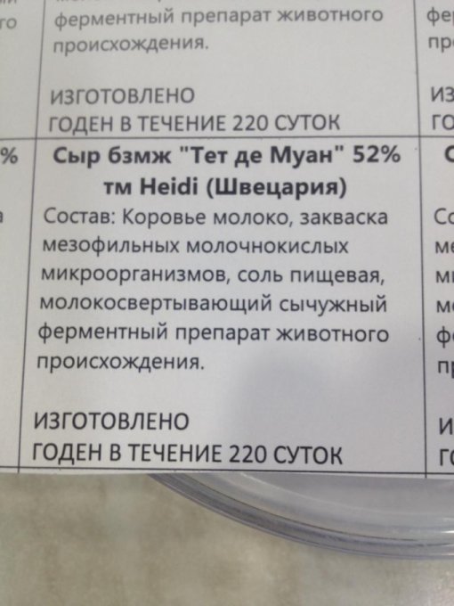 | Сыр швейцарский, м.д.ж. 50% в сух. в-ве |