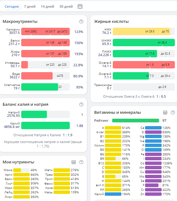 | Итого за день | 3270 | 1619 | 145 | 90 | 49 |