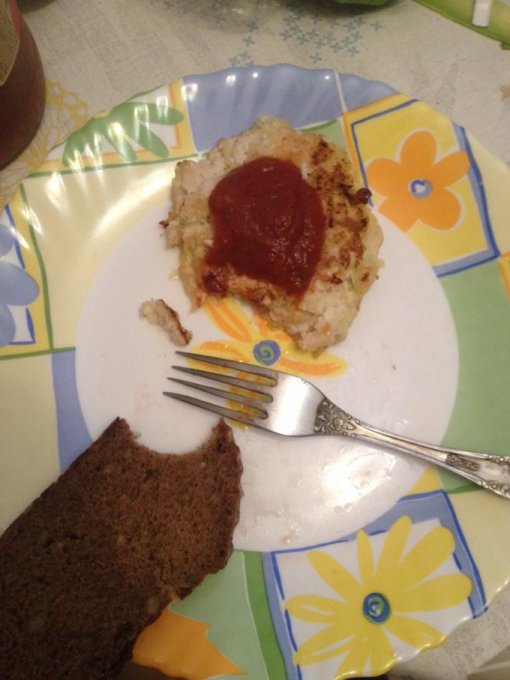 эксперементирую с котлетами. Куриная грудка 1 кг кабачок 400 гр. Кабачок на терке грудка на мясорубке смешал мукой обвалял и на сковородку. Сочные вкусные получились. Вкуснее чем с луком.