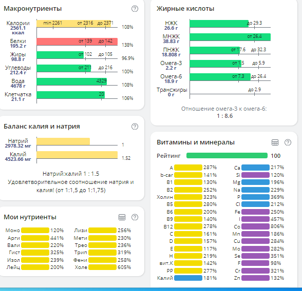 Чтобы увидеть отчеты по питанию и график веса, необходимо войти.