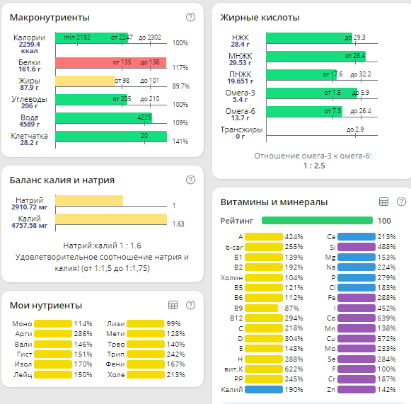 | Итого за день | 5192 | 2259 | 161 | 87 | 206 |