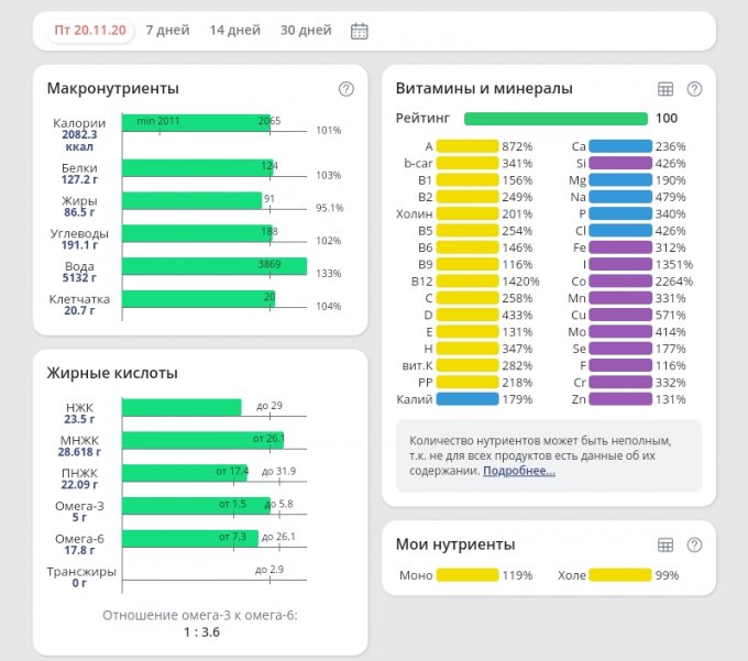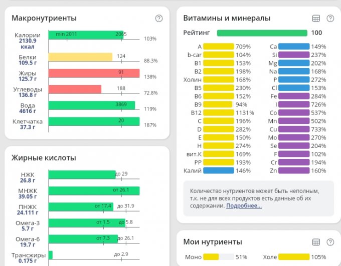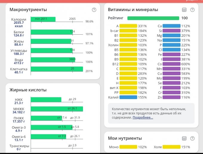 3. В питании не набирал зелёные полосочки умышленно хочу завтра за два дня сдела все идеальным.Цель эксперемента один день едим что хотим а второй день делаем два дня идеальными :-D